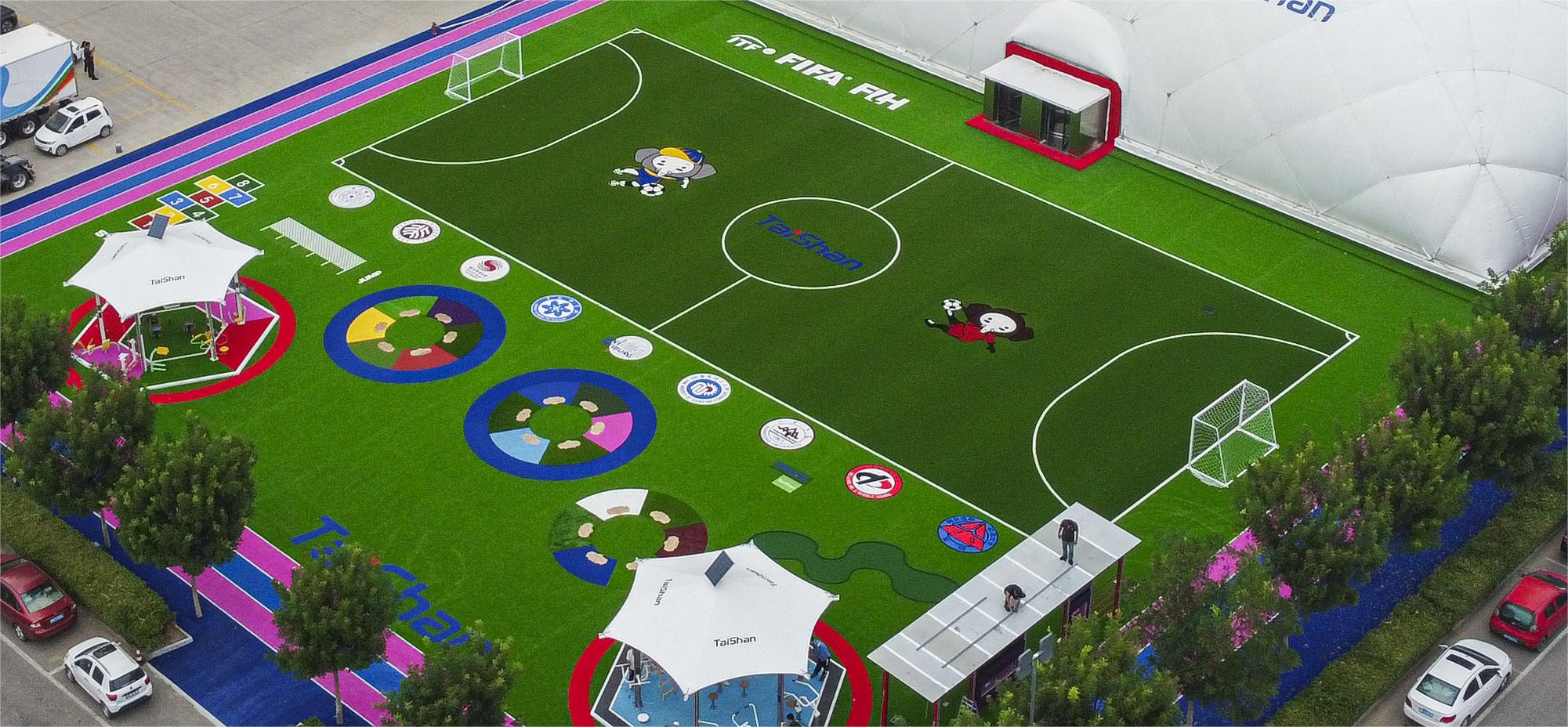 整个顶目建筑,根据不同分区的用户需求和体验,在场地铺设上,均采用米兰集团新材料功能人造草铺设,例如健身步道搭配铺设负离子草、跑道草,休闲景观草等,不同运动场地铺设篮球草、网球草、羽毛球草等,在儿童落戏区铺设儿童运动草、卡通图案草、搭设茅草屋等,全方位保证运动安全和环保。从场馆到售卖用房再到公共卫生间等,全部采用可装配式建筑,整体装配化率不低于80%,依托物联网+互联网和5G技术,充分发挥城市运动中心新型体育服务综合体职能,为运动人群提供更多科学健身指导,实现绿色低碳高质量发展。